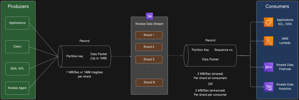 In today’s fast-paced digital world, real-time data is critical for making informed decisions. From e-commerce clickstreams to IoT sensor data, the ability to process and analyze information as it arrives provides a significant competitive advantage. This blog post will demystify AWS Kinesis Data Streams by breaking down its core components and explaining how to build a scalable, end-to-end data pipeline.